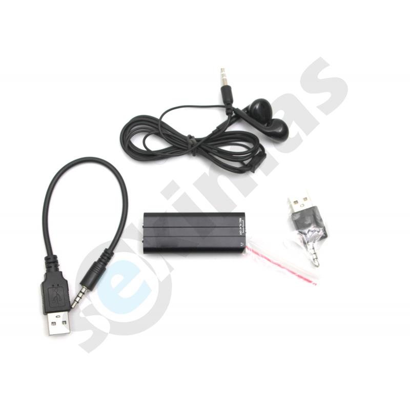 Mažas ir aukštos garso kokybės mini diktofonas. Puikiai tiks tais atvejais, kai reikia jį nepastebimai paslėpti. Dėl jo mažo dydžio, jį galėsite paslėpti arba netgi įmontuoti praktiškai bet kur. Slaptas diktofonas turi aktyvacijos nuo garso funkciją, kas labai palengvina perklausimo procesą, nes nebelieka tylos pauzių. Mini diktofonas pasižymi puikia garso kokybę, todėl galėsite būti užtikrinti, kad puikiai girdėsite kiekvieną įrašytą žodį. Šiuo diktofonu nesunku naudotis, užtenka tik pastumti šliaužiklį ir įrašas prasidės. Garsų įraša galima perklausyti pajungus diktofoną per USB jungtį prie kompiuterio.Tokiu pat būdų įrašus galima ir ištrinti.