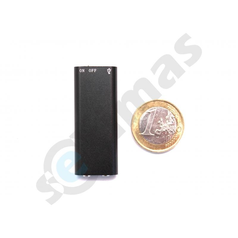 Bene pats mažiausias mini diktofonas, gali būti lengvai paslėptas ir padės įrašyti aplinkos garsus. Šio diktofono kokybė - puiki, įrašymas įmanomas iš 7-10 metrų. Nors akumuliatorius yra mažas, tačiau įrašymas gali trukti iki 17 valandų. Praėjus šiam laiko tarpui, diktofoną reikės pakrauti, ir esant reikalui, vėl padėti į vietą. Naudotis šiuo įrenginiu ypatingai paprasta, tam užtenka pastumti šliaužiklį ir įrašas prasidės. Norint pabaigti įrašą - taip pat pastumkite šliaužiklį į kitą pusę. Garso įrašai perkeliami į kompiuterį per USB jungtį. Pajungus prie kompiuterio, galite taip pat ištrinti visus įrašus, kad būtų galimybė įrašyti naujus.